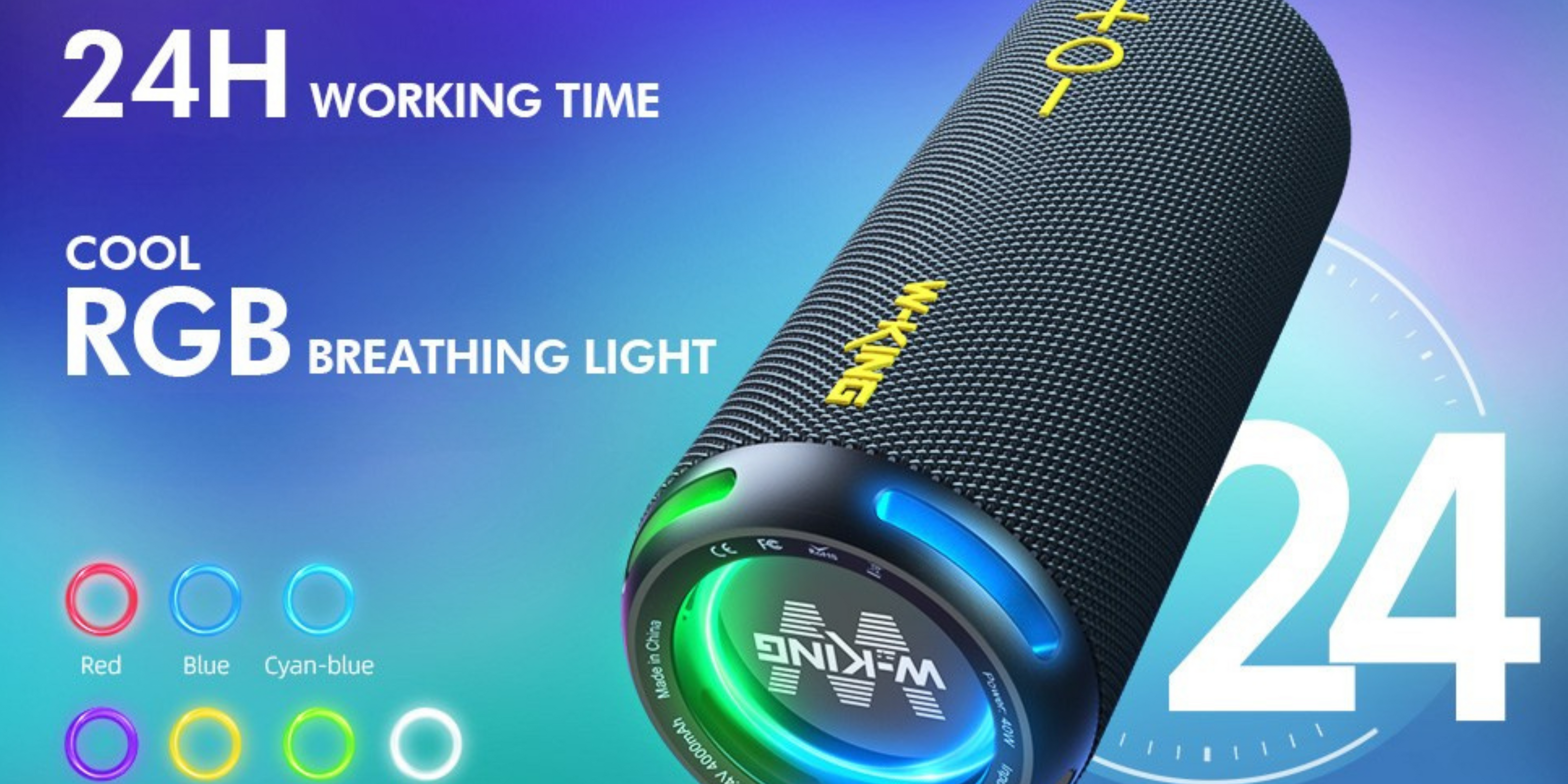 Get ready to experience the perfect blend of powerful sound and dynamic lighting with the WKing D320 portable Bluetooth speaker.