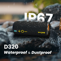 The speaker is equipped with a 5.3V battery that ensures long-lasting performance, providing hours of playtime on a single charge. Whether you're at the beach, in the park, or having a backyard BBQ, the D320 is the perfect companion for any occasion.